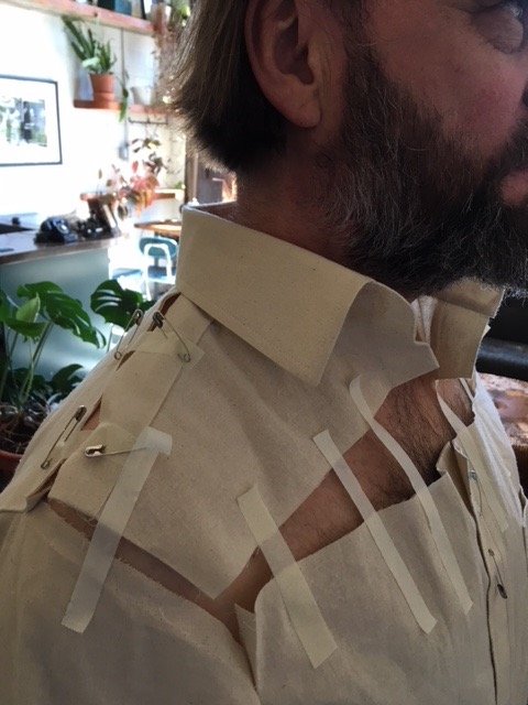 I spoke of the challenges of fitting a shirt and how it being worn next to the skin means more attention needs to be paid to asymmetry in the body. Shirts are not usually padded or canvassed like a jacket.