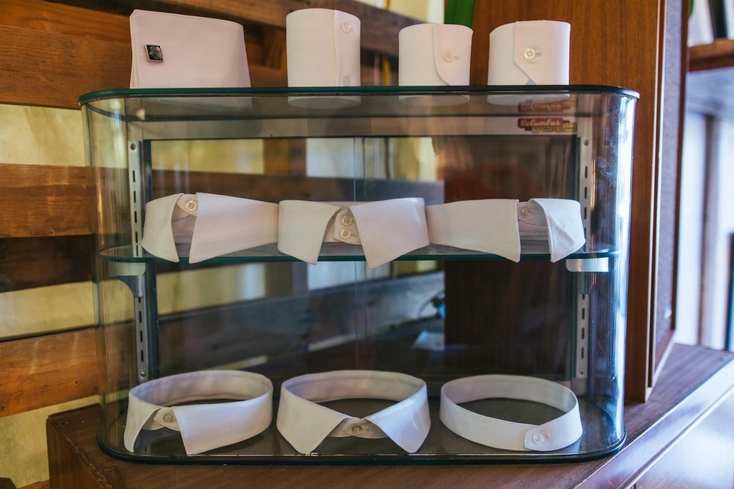 Collar and cuff samples in the studio